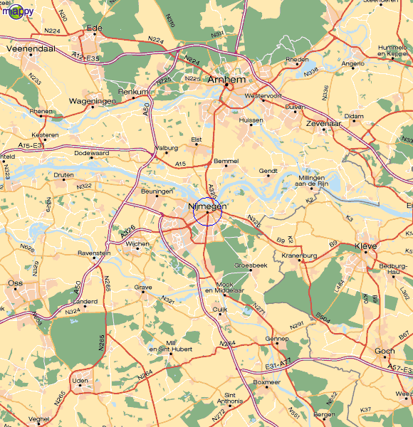 Der Kreis zeigt die ungefähre Lage im Wohngebiet. Die Messe findet in einer