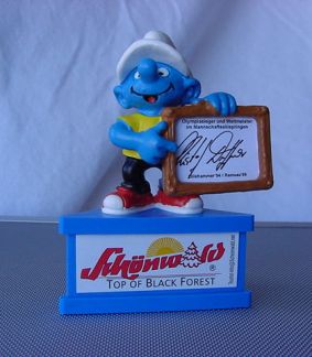 40459 Schildschlumpf #4 Schild-Schlumpf mit original Autogramm von Christof Duffner; Olympiasieger und Weltmeister im Mannschaftsskispringen April '99 800 Stück